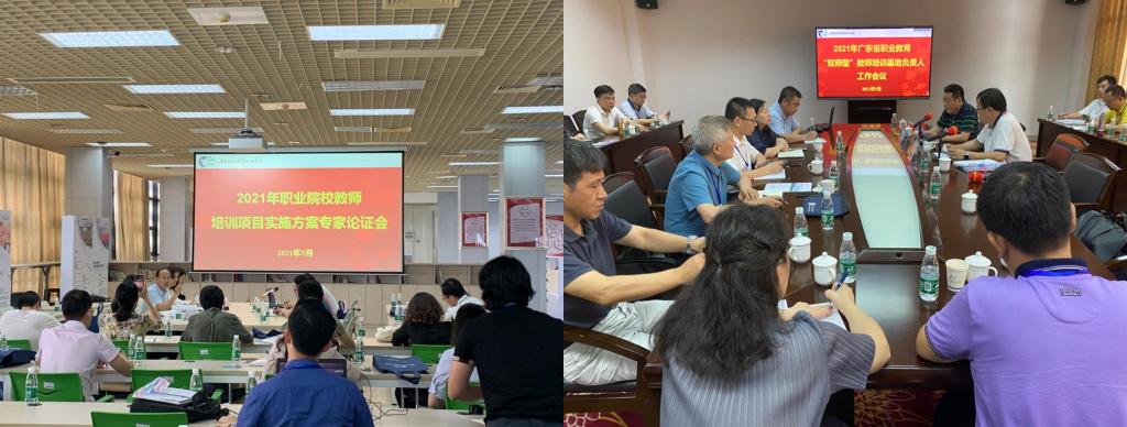 广东省教育厅教师继续教育指导中心组织召开的广东省职业教育“双师型”教师培训基地负责人工作会议及广东省职业院校教师素质提高项目管理办公室(下称省项目办)组织的2021年职业院校教师培训项目(国培、省培项目)实施方案专家论证会于5月13日至14日在成人電影南海校区北区图书馆二楼会议室、图书馆三楼多功能课室顺利举行。