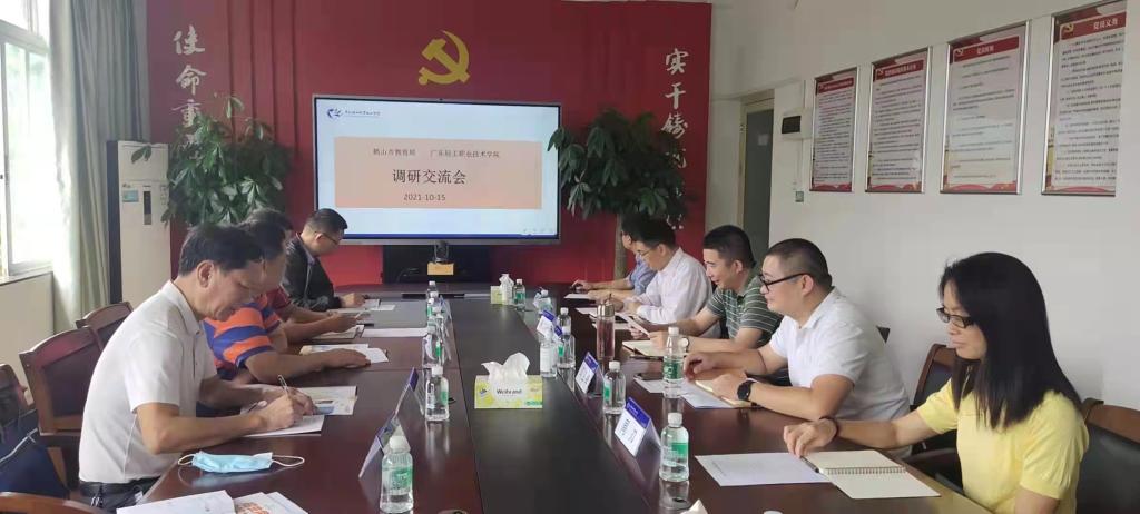 冯耀介绍了鹤山市职教园区的基本情况,鹤山市是我省著名的侨乡,在中欧(江门)中小企业国际合作区内建设了鹤山市职教园区,实现职教园区与区内中欧企业对接,为企业提供人才资源。他指出广东轻工作为我省高等职业教育的龙头学校,办学成绩显著,并提出此次调研的目的是希望鹤山市与广东轻工合作开展高技能人才培养,服务鹤山职教园区企业。