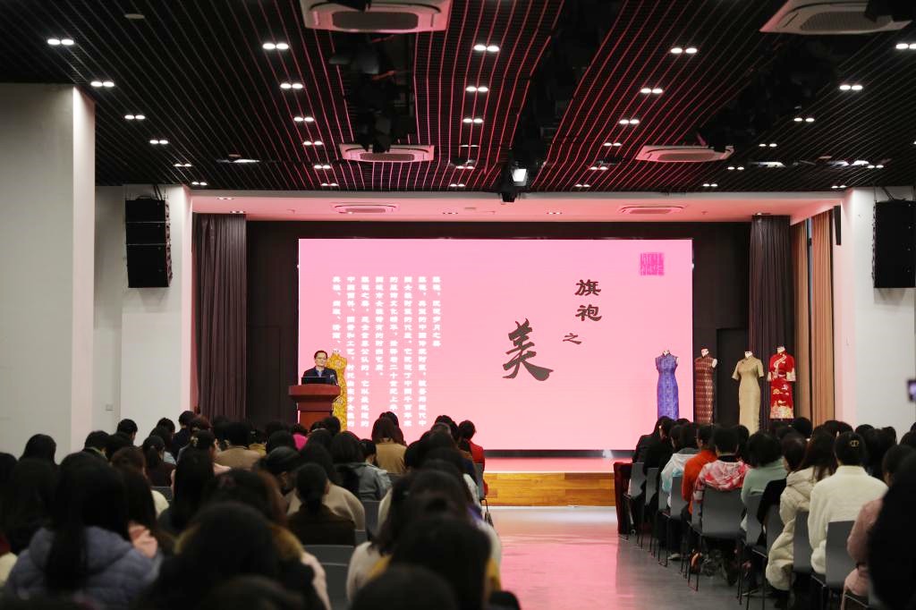 本次讲座主讲为深圳市工艺美术大师、中华旗袍馆馆长、唐颂品牌创始人唐光艳老师,她从旗袍的渊源、历程、工艺、知性代表人物、文化内涵、品鉴、着装原则、非遗传承等方面娓娓而谈,系统讲述了东方审美里最浓重的一笔——《旗袍之美》。讲座期间还穿插了旗袍礼仪及走秀指导、中国四大名锦、绫、罗、绸、缎面料鉴赏、手工盘扣体验等环节。凝瑞文化服饰公司董事长高彧军应邀来到现场,分享旗袍之美感受。整场活动别出心裁、引人入胜,理论与实物相结合,专业性强又生动形象,知识文化内涵丰富,为女教职工全方位展示了一场视觉听觉盛宴、服饰传统文化大餐。