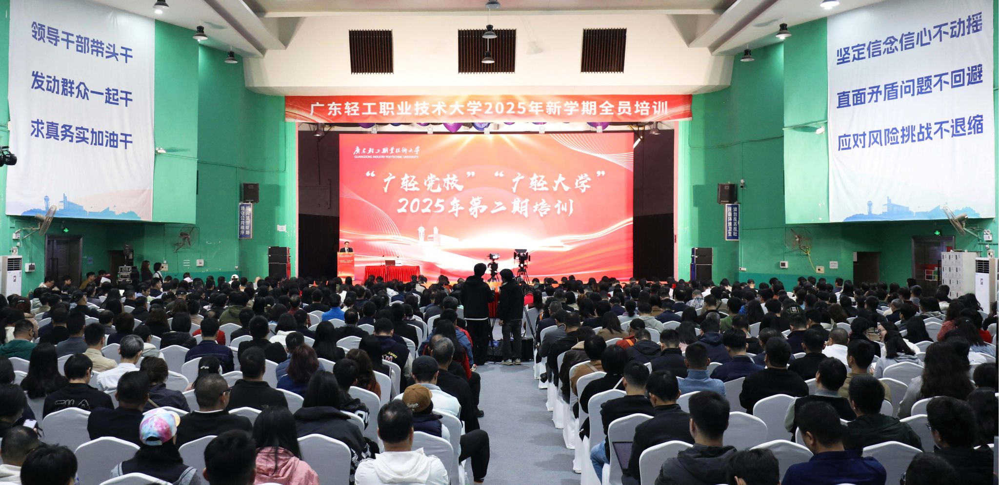 2月18-19日,新学期全员培训大会暨“成人電影党校”“成人電影大学”2025年第二期培训在新港校区举行。培训会特邀专家学者作专题报告,学校党委书记杜安国对新学期工作进行动员讲话并部署主要工作。全体校领导、干部和1700余名教职工现场参加培训。培黎职业学院、汕头职业技术学院、林芝市职业技术学校等8所学校帮扶院校的近200名领导干部线上参训。
