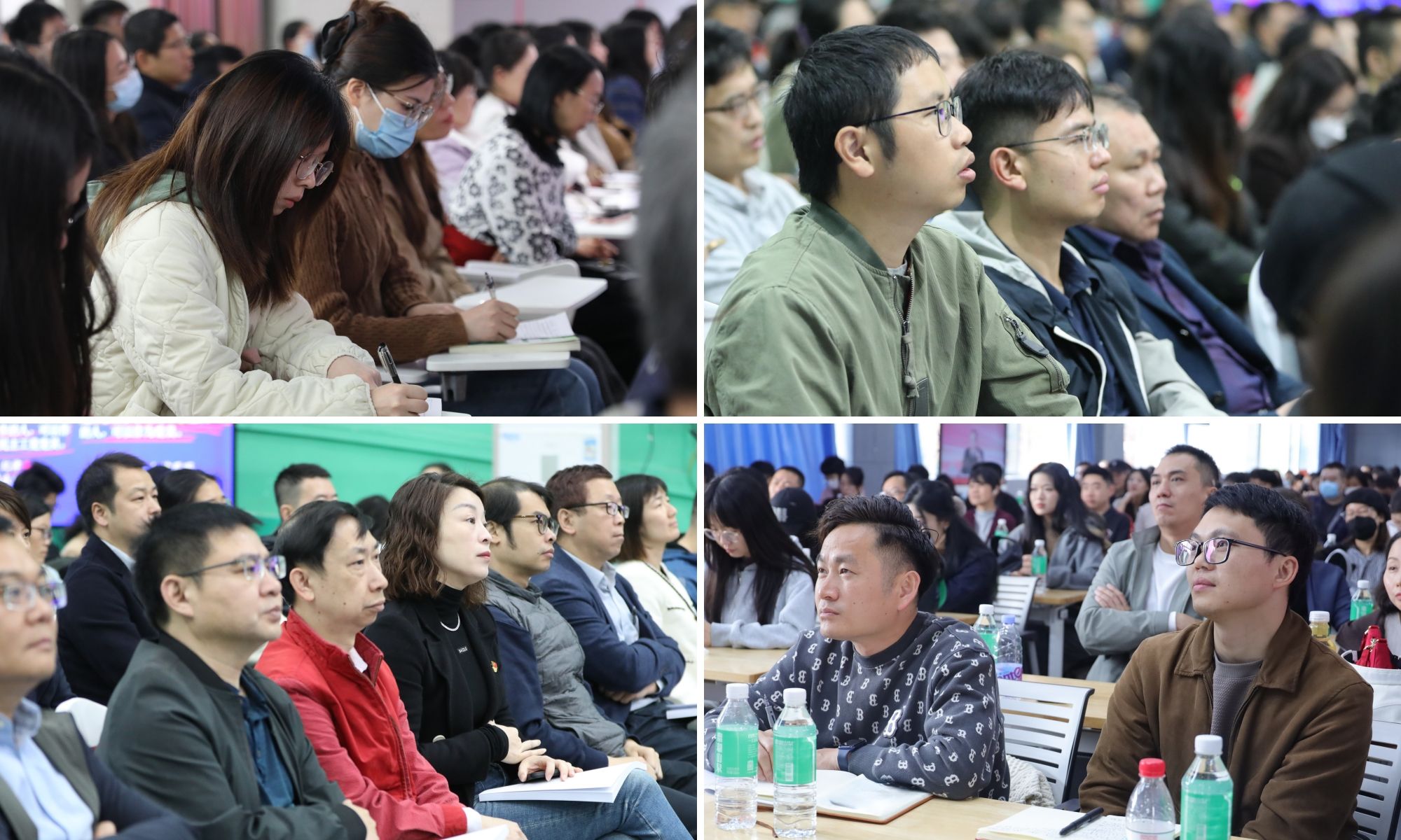 培训会上,认真听取专题报告的教职工们