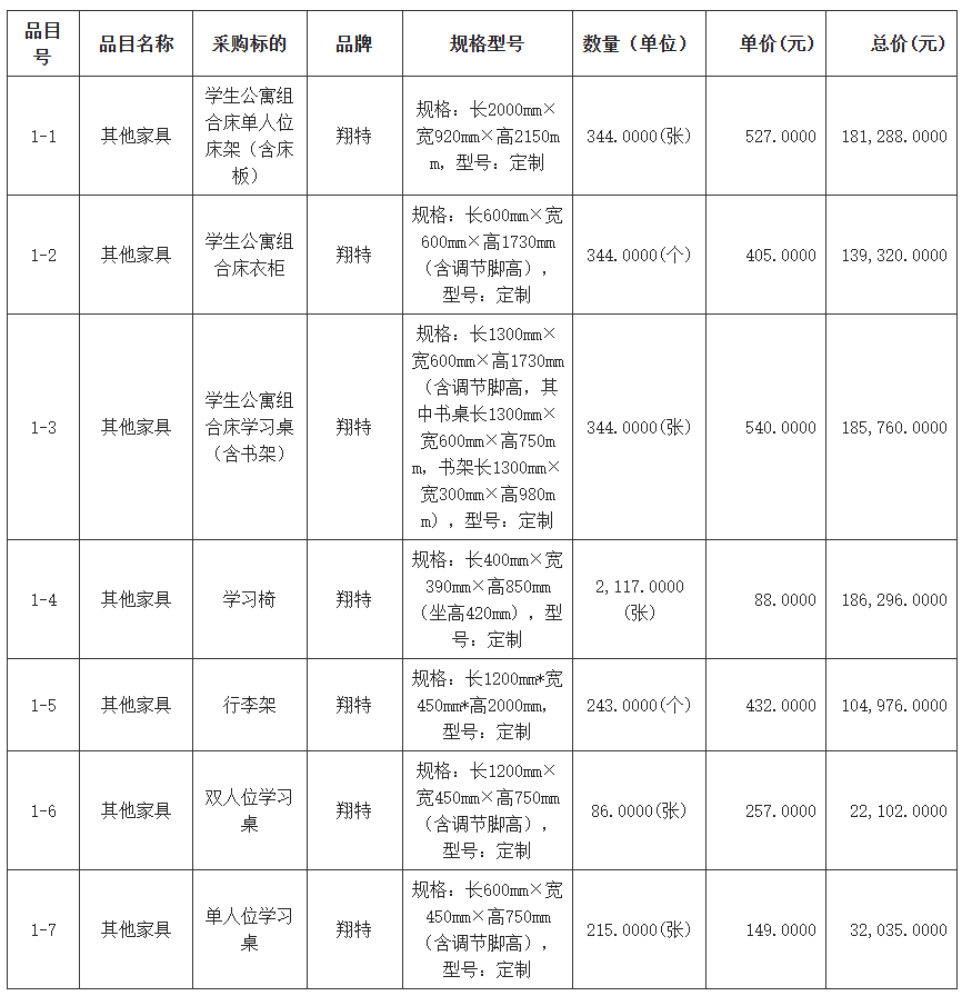 合同包1(成人電影2025年学生公寓家具改造购置项目):