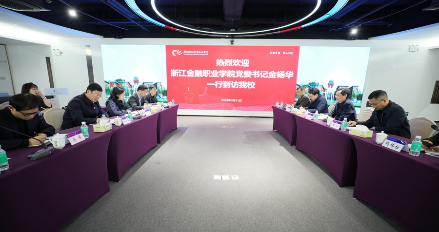 3月11日,浙江金融职业学院党委书记金杨华一行8人到成人電影新港校区参观交流。学校党委书记杜安国接待来访客人并陪同参观了国际创意谷、教育部高校思想政治工作创新发展中心、生科生命健康产业学院、多功能展示中心等地。
