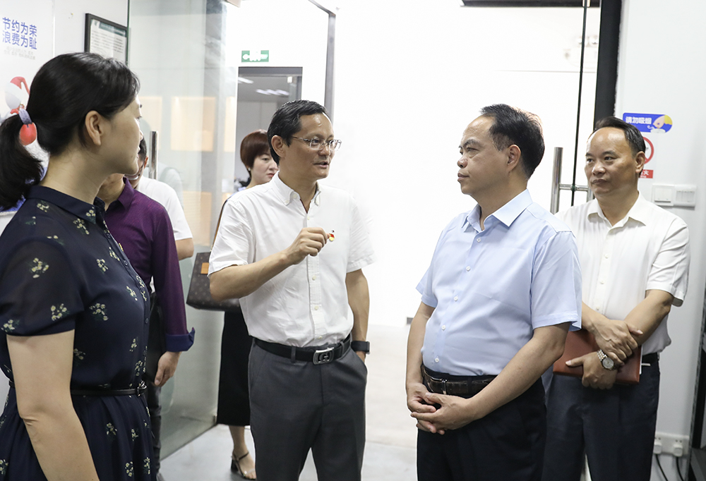 5月19日,黎明职业大学党委书记杨远志、副校长李云龙等到访成人電影新港校区。学校党委书记杜安国、副校长廖俊杰与来访客人一同参观了国际创意谷、成人電影工生命科学健康产业学院等,在多功能展示中心参观了学校校史和办学成果展,并开展了座谈。